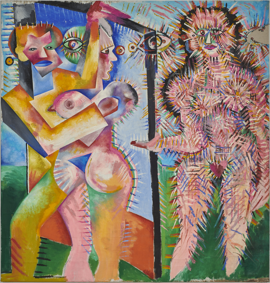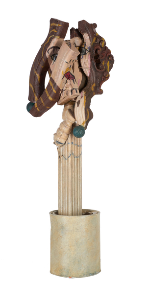 Molding Man, 1960, Wood, oil, nails, paint, golf balls, plaster and metallic tin